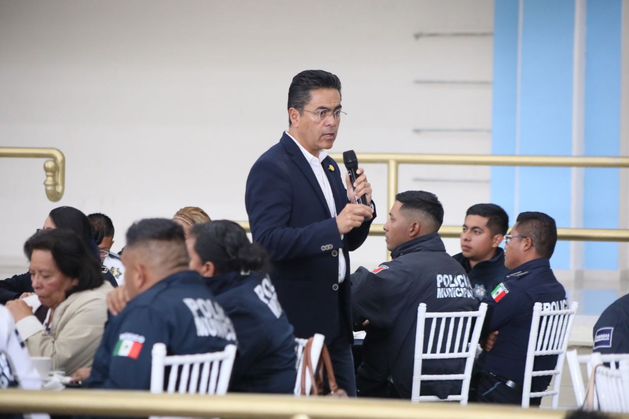 En el marco del Día del Policía, el presidente municipal de Mineral de la Reforma, Eduardo Medécigo Rubio, entregó reconocimientos, estímulos y ascensos a elementos de la Secretaría de Seguridad Pública y Tránsito local.