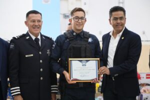 Durante esta importante ceremonia se reconoció como policía del año a Emmanuel Isaí Cabrera Zamorano, quien a nombre de las y los galardonados, agradeció la lealtad y respaldo del presidente municipal, Eduardo Medécigo, y su compromiso para fortalecer a la corporación policial y el trabajo que ejecutan en las diferentes dependencias que conforman la Secretaría de Seguridad Pública y Tránsito local.