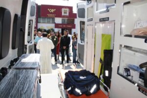 Asimismo, una ambulancia de terapia intermedia, equipada con instrumentos de atención prehospitalaria y rescate, que cuenta con monitor multiparámetro de signos vitales para la vigilancia continua del paciente, equipo de aspiración de secreciones portátil de succión automática para el manejo de la vía aérea, un desfibrilador externo automático para la atención de eventos cardiacos súbitos.